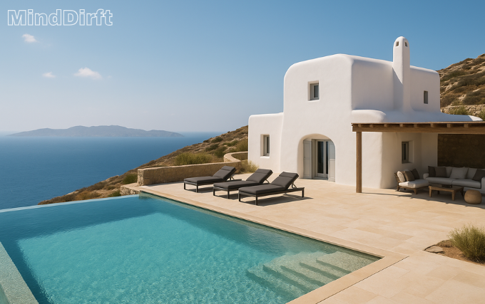 Each villa blends traditional elements—whitewashed walls, stone accents, Cycladic curves—with modern comforts. Interiors are stylish yet welcoming, often featuring local art and artisan furnishings.
